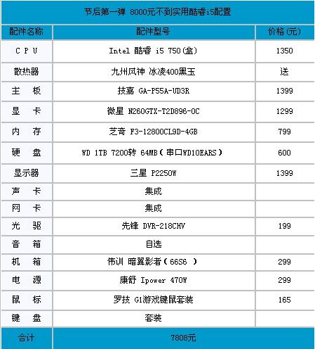 本套配置采用的是酷睿i5 750处理器,该处理器也可以视作是千元以上关注度最高的四核产品。该处理器为45nm工艺制造,但启用了新的LGA1156接口。其主频为2.66GHz,并没有提供超线程功能。四颗核心共享8MB三级缓存,TDP 95W。 本套配置选择的产品并无太大亮点,均采用了目较前端的产品。在缺货严重的时候能够提供产品成为了值得点评的部分。此外价格也是消费者值得关注的地方。